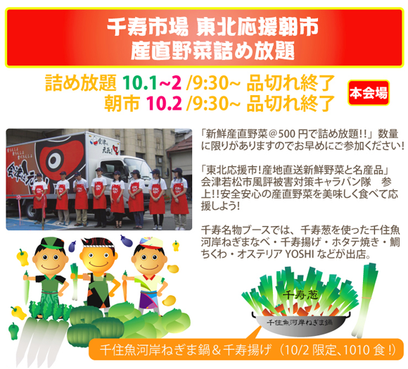 千寿市場 東北応援朝市 産直野菜詰め放題